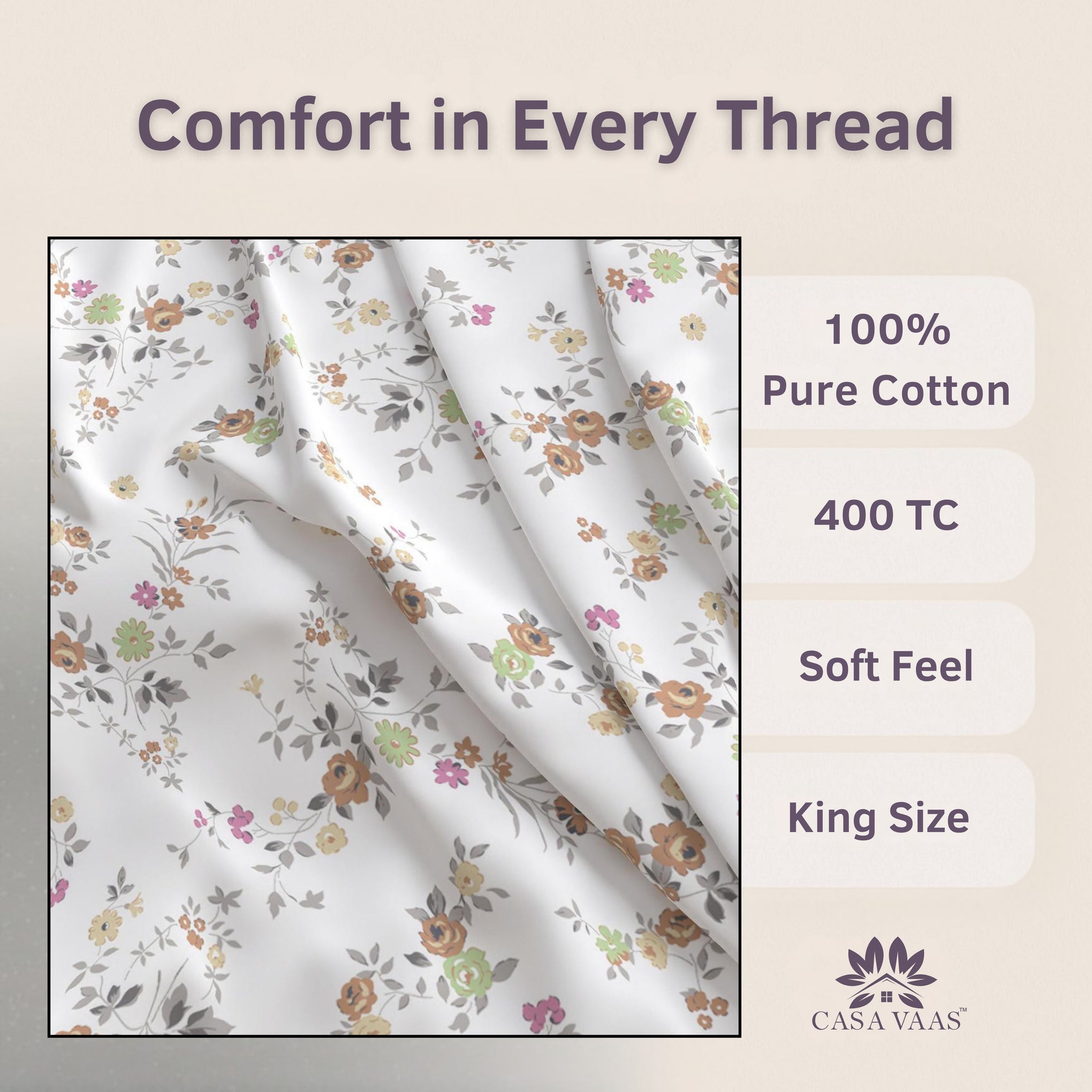 It refers to the number of threads woven per square inch — higher TC gives smoother, denser, and more luxurious fabric.