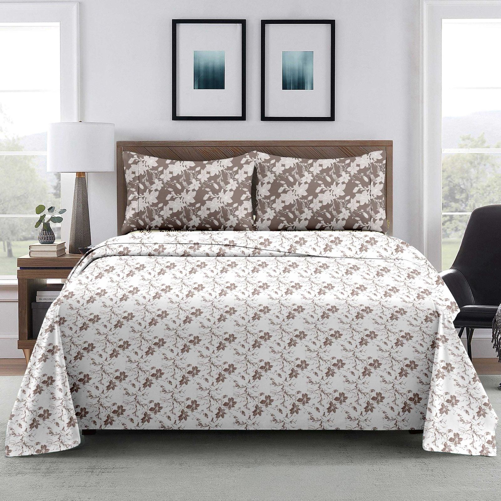 Bring home the elegance of soft cotton comfort with the Casa Vaas Whisper Vine - Brown King Size Bedsheet Set. Designed with a soothing floral print in refreshing brown and white tones, this bedsheet adds a touch of freshness to your bedroom décor. Crafted from breathable 100% pure cotton fabric, it ensures a cool, comfortable, and restful sleep.